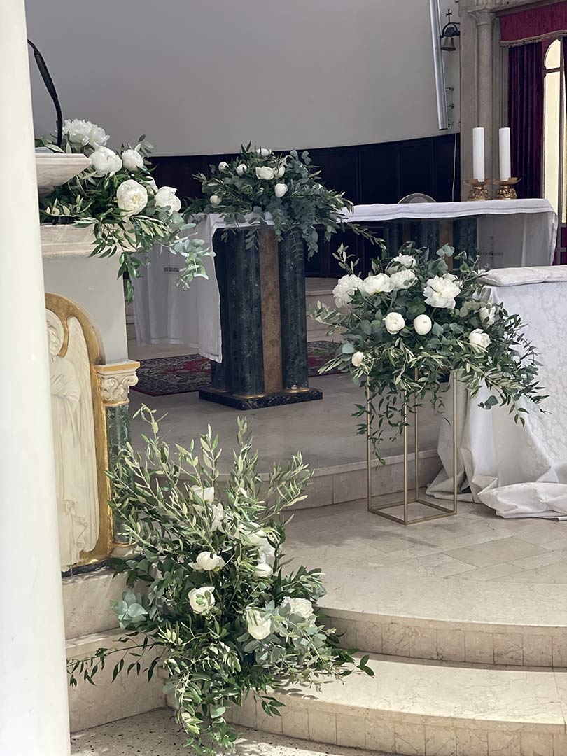Tiziana, insieme al suo staff, progetta ogni fase dell’allestimento floreale di un matrimonio creando decorazioni personalizzate che hanno come obiettivo quello di catturare l’essenza della storia d’amore degli sposi. Dal bouquet fino all’allestimento della chiesa e del ricevimento: curiamo ogni minimo dettaglio per regalarti il matrimonio che hai sempre sognato.